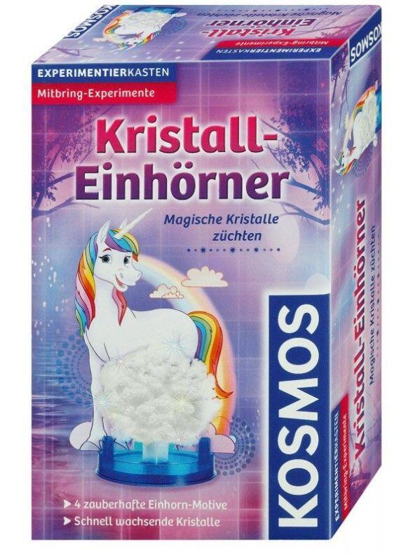 Vier Einhörner wollen auf Kristallwolken schweben. Mit diesem Set können die Kristalle selbst gezüchtet werden. Dazu wird ganz einfach ein spezielles Filterpapier in die fertig beiliegende Kristallsalzlösung getaucht. Auf der Papieroberfläche wachsen bald feine Kristalle. Wie das funktioniert, wird in der farbigen Anleitung genau beschrieben. In Kombination mit den vier zauberhaften Einhorn-Figuren entsteht so eine tolle Deko für jedes Kinderzimmer.